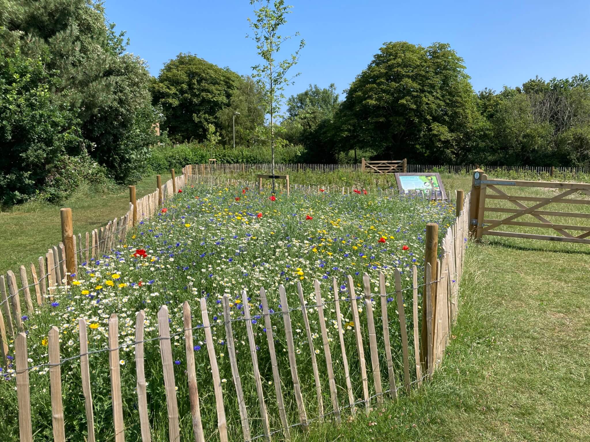 Wildflower Turf Ltd sponsored 250m² of MeadowSow ™ wildflower seeds, creating two stunning blocks at the main entrance of the park. Sown in Spring 2025, the wildflower meadow allows visitors to immerse themselves in a vibrant display, making an immediate and lasting visual impact.